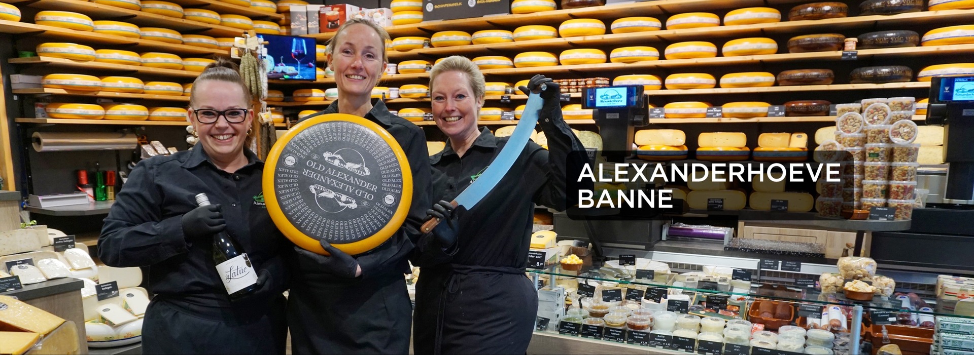 Hartelijk welkom bij Alexanderhoeve Banne in Amsterdam. Mijn naam is Carolina en samen met Monique en Janice vertel ik je in onze winkel graag alles over onze producten. Zelf zit ik al 24 jaar 'in de kaas' en ook de dames hebben inmiddels jaren ervaring. Kom maar snel een keer wat proeven!